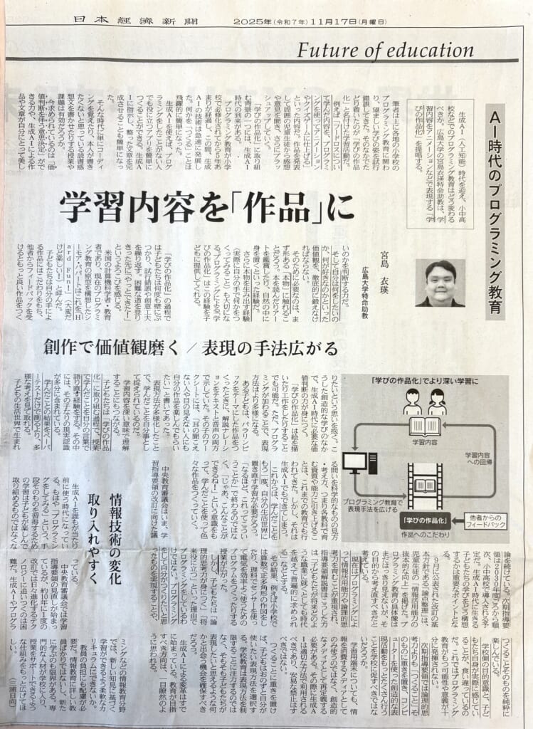 今回は、日本経済新聞の記事をもとに、これからのプログラミング教育について