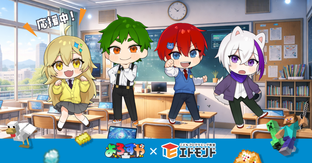 マインクラフト関連コンテンツを通じて多くの子どもたちから支持を集めるYouTuber「よろずや」と、全国100教室以上を展開するプログラミングスクール「エドモンド」が協力し、子どもたちがプログラミングに興味を持つきっかけづくりや、学びへと自然につながる体験設計を目指します。
